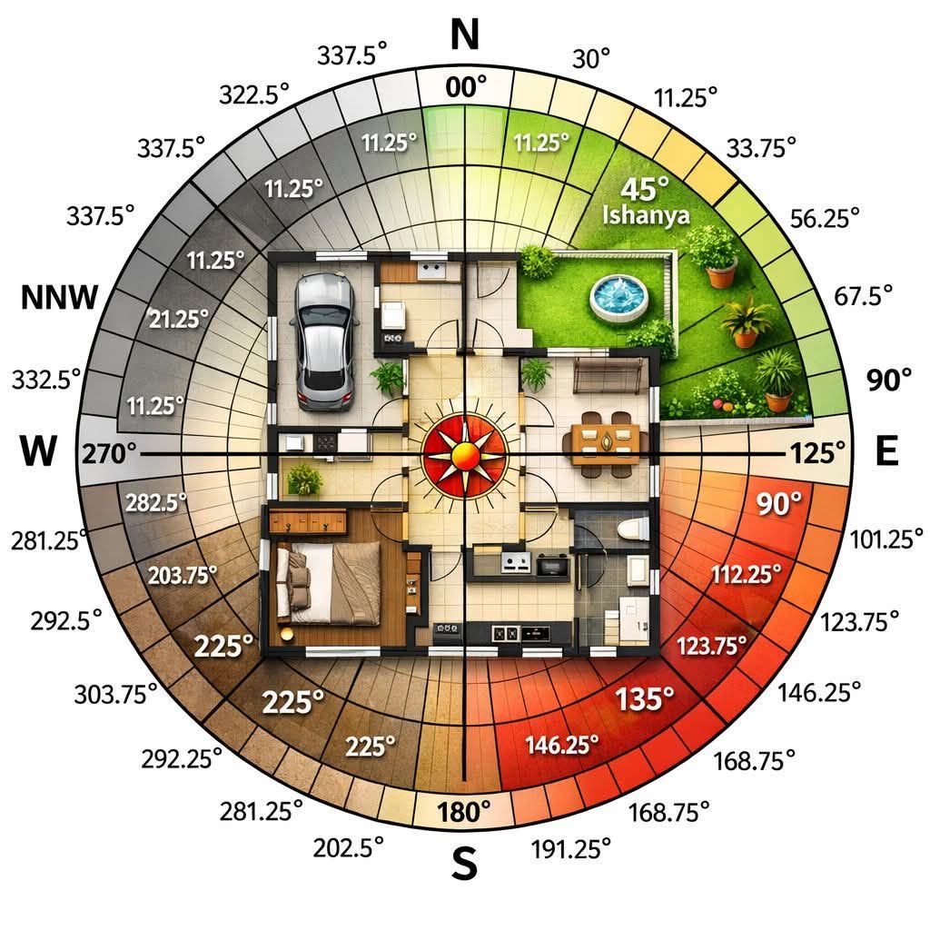 - Interior Decor: Use light, calming colors and ensure maximum natural light flows into the house from the east or north.